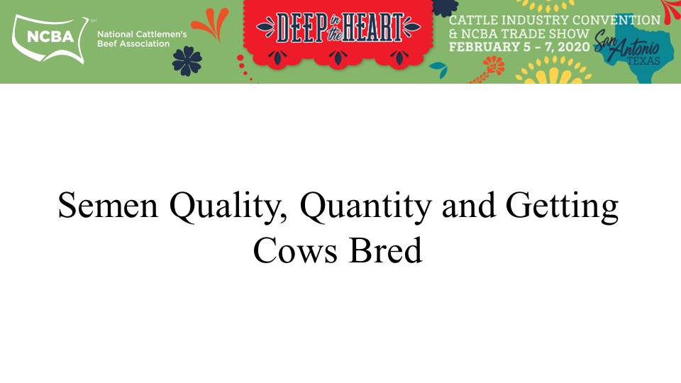 010 - Manners Matter: Keeping You and Your Cattle Alive and Well, Selection of Replacement Heifers for Fertile Longevity, Selection of Replacement Bulls for Fertility
