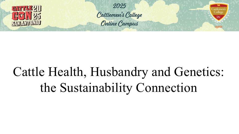 010-1 - Cattle Health, Husbandry and Genetics: the Sustainability Connection