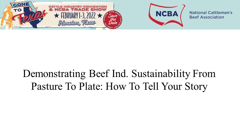 010-16 - Demonstrating Beef Ind. Sustainability From Pasture To Plate: How To Tell Your Story